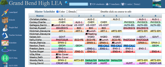 SIS view of the ODS database including Bell Schedules and possible conflicts.